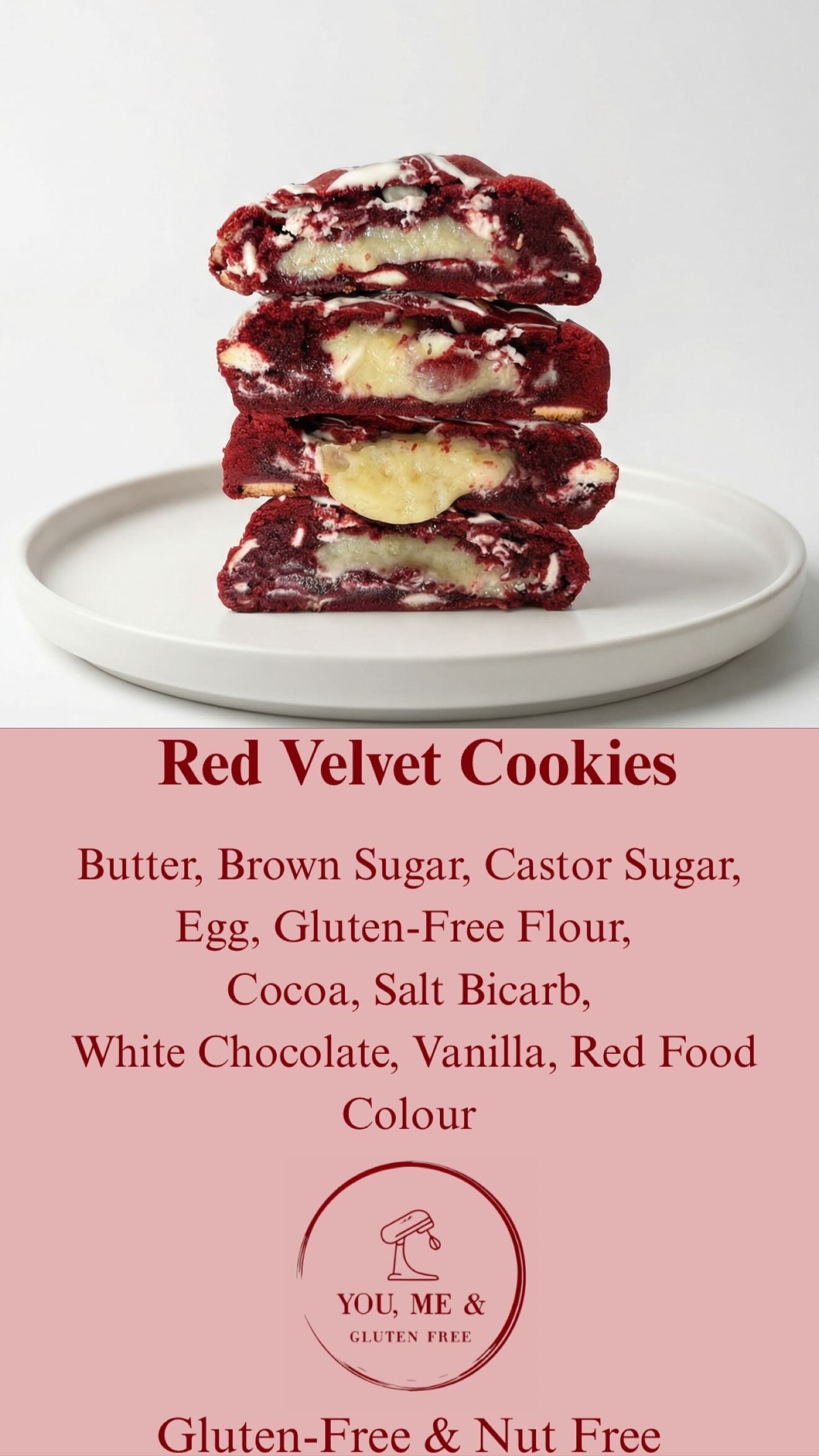 Soft, rich, and irresistibly smooth—these red velvet cookies are packed with a subtle cocoa flavour and studded with creamy white chocolate. Finished with that signature velvety crumb, they’re the perfect balance of indulgent and nostalgic.